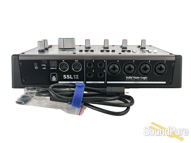 The Solid StateLogic SSL 12 is the perfect audio interface for producers and engineers who demand uncompromising performance and versatility from a desktop device. SSL 12 is capableof being both a studio centrepiece and a portable production hub to take with you on the road. Four SSL-designed mic pre-amps with uncompromising low-noise and high gain performance, Legacy 4K analogue enhancement for adding that signature SSL colour, class-leading dynamicrange from premium-quality converters, comprehensive monitoring section, ADAT expandability, talkback mic, flexible headphone outputs and an intuitive console-style software mixer. SSL 12 just set a new bar for what you can expect from a unit that is entirely USB-powered.
