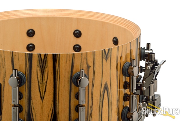 Finish - The snare features a gorgeous high gloss lacquered White Ebony veneer and black nickel plated fittings