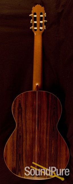 This is a spectacular signed Contreras I from the Golden Era of the Manuel Contreras Sr. Madrid shop. The guitar is amazingly warm with tons of overtones and an exceptionally sweet midrange. It's an extremely dynamic instrument with a lot of power from the basses and presence from the trebles. The guitar used to belong to Pepe Romero and includes documentation proving this. The cedar top is absolutely flawless. There is some lacquer checking on the neck. The Brazilian Rosewood back has two cracks that have been well repaired. Cracks like these are not out of the ordinary for a guitar from this era. Includes original hardshell Contreras case. This guitar is truly a collector's dream. Condition is Very Good ++.