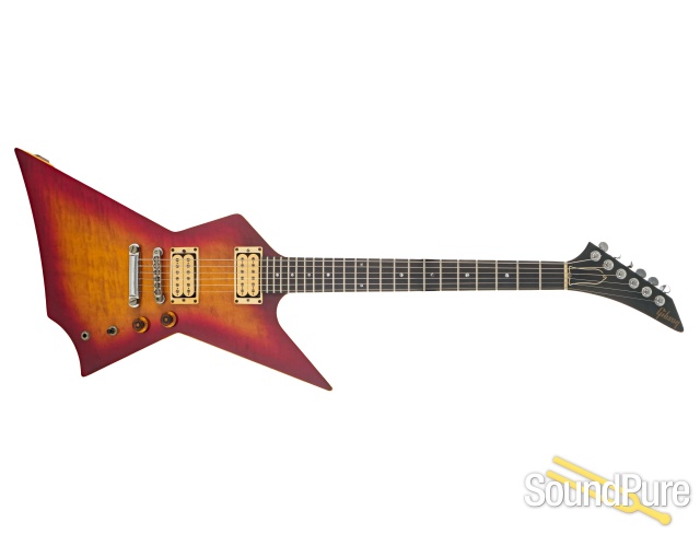 Step into a legacy with this stunning 1985 Gibson Explorer XPL, a true titan of tone and a captivating piece of rock history! Its three-piece mahogany body, crowned with a beautiful flamed maple top, combines with a mahogany set-neck and ebony fretboard to deliver incredible sustain and a truly commanding voice. Driven by dual original Gibson Dirty Fingers humbuckers, this beast offers blistering output and sonic versatility through its streamlined 1 Volume, 1 Tone, and 3-way switch controls. Boasting fresh, spec-accurate frets, meticulously replaced and shaped by our expert luthier, this XPL is no mere "as-is" relic; it's been lovingly restored, its minor imperfections precisely blended, ensuring an absolutely rock-solid instrument that's supremely playable. This isn't just a guitar; it's an investment, ready to ignite your inspiration!