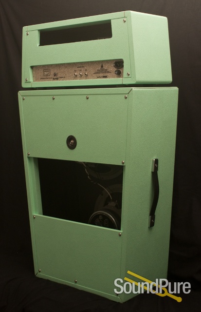 Our speakers are voiced for us by WGS to sound like a vintage 30 watt Greenback. The 2×12 is wired at 16 ohms. The cab is shown in the now discontinued Sonic Blue Tolex.