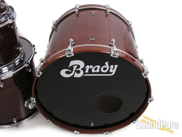 The Brady Drums five piece kit made from Spotted Gum with a natural satin finish was produced using a revolutionary method developed by Chris Brady in 1988 to create thin ply shells that have a solid-wood sound. The Spotted Gum kit features two floor toms, two rack toms, and a 24 inch kick drum. The drum sizes are 7x10 rack tom, 8x12 rack tom, 14x14 floor tom, 16x16 floor tom, 16x24 kick drum. The snare used in the video was a Brady Spotted Gum 5.5x14 snare drum. We also only used the 7x10 inch rack tom and the 14x14 inch floor tom. Thanks to Drummer Devin Fuller, Organist Mark Wells, and SoundPure's Jared Wofford for the sick tune. To learn more about the drum kits that SoundPure now carries, call us today or email drums@soundpure.com. 888.528.9703. or 919.682.5552. The drum selection is available on Indoor Storm's website.