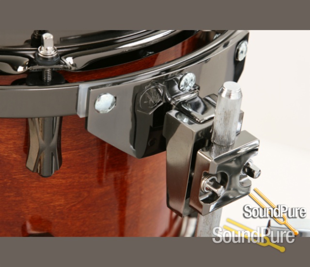 PATENTED SUSPENSION SYSTEM: The unique under lug suspension system we offer has a significant impact on the overall sound of our drums. The system creates a "virtual axle" between the two outside mounting lugs. All contact between the mounting hardware and any resonant component of the drum shell or rim is eliminated. This increases both sustain and decay of the drum. The weight of the drum is completely isolated from the tuning rim and head. In addition to the sonic advantages of our suspension method, head changing is greatly simplified and actually convenient. Because the mounting rim is attached to the underside of the lug rather than the tension rod side, drum heads can be changed without complete disassembly of the entire system (very useful if a head needs to be changed on stage or in the studio.)