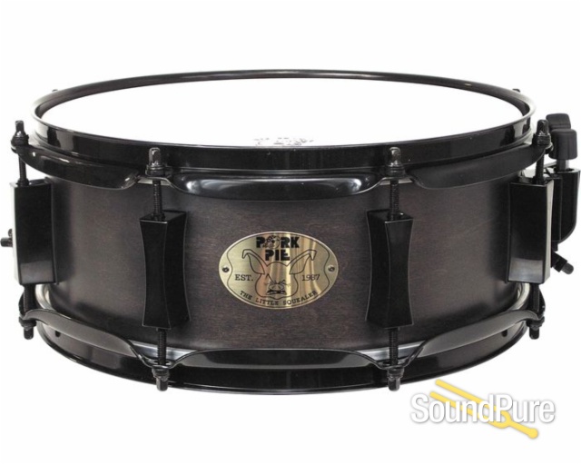 The Pork Pie Little Squealer Maple Snare Drum is made with an 8-ply all maple shell finished in ebony satin with black chrome hardware for cool looks. Heavy-duty hoops are of 2.3mm triple-flanged steel. Comes with Pork Pie high-quality snare wire. Remo heads top off this punchy little drum.