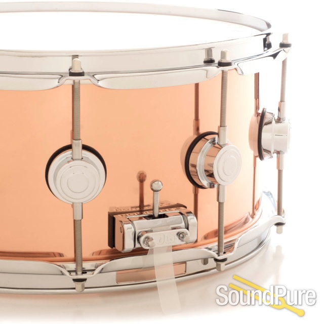 Possibly the warmest sounding metal DW offers, it’s a soft metal with many of the tonal characteristics more associated with wood drums. Offered in a polished finish, Collector’s copper delivers a warm crack with plenty of response and playability. Customizable in any of five Custom Shop drum hardware color options, this drum sounds good with various head configurations and is suitable for just about any style of music.