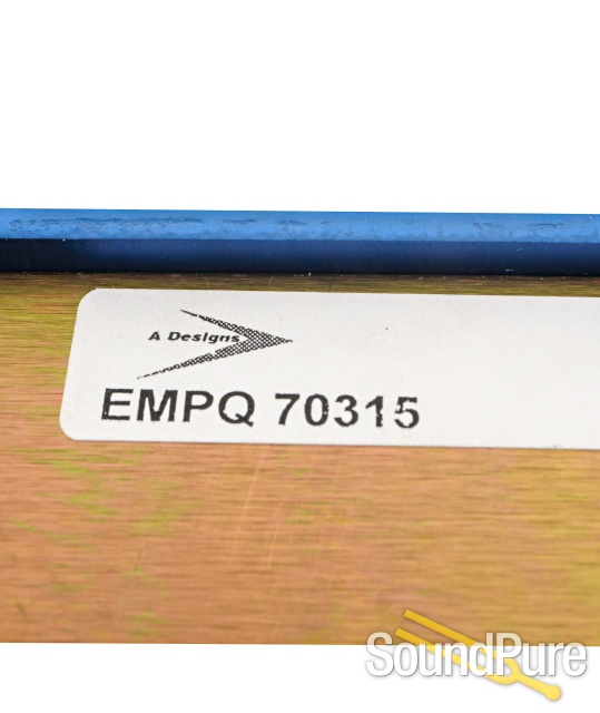Additional features of the EM-PEQ include a nickel-core output transformer, gold Grayhill rotary switches, Wima caps, and a true hard-wired bypass. Plus, instead of using common off-the-shelf chokes, A-Designs uses a custom tapped inductor, wound to the original values as the original Pultec. Along with the classic EQ circuitry, layout, and exceptionally musical sound of the classic Pultec, the EM-PEQ offers fully balanced, noise-free performance and modern impedance specs for easy operation and fast studio integration.