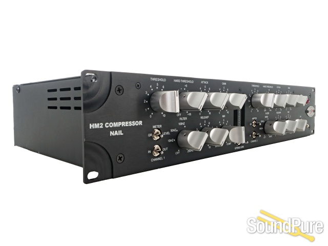 Awarded a “Mix Certified Hit” by Mix magazine, the A-Designs Audio HM2 NAIL Compressor/Limiter has three unique features that set it apart from ordinary compressors: Hard Threshold, Filter, and Mix. But that’s not where it ends. The NAIL’s tube circuitry and components were specifically chosen and designed to impart the rich, euphonic sound of analog to digital recording—enabling it to confidently “ride” the 2-bus in a place of prominence. And while the NAIL can add character to any sound, it can also work transparently in the background—all at the engineer’s digression. Not just for the 2-bus, its ability to switch from linked stereo to dual mono makes it a great tracking compressor as well. Better still, on a stereo mix, using dual mono offers the added bonus of making the mix sound wider, as though it extends beyond the left/right boundaries of the speakers.