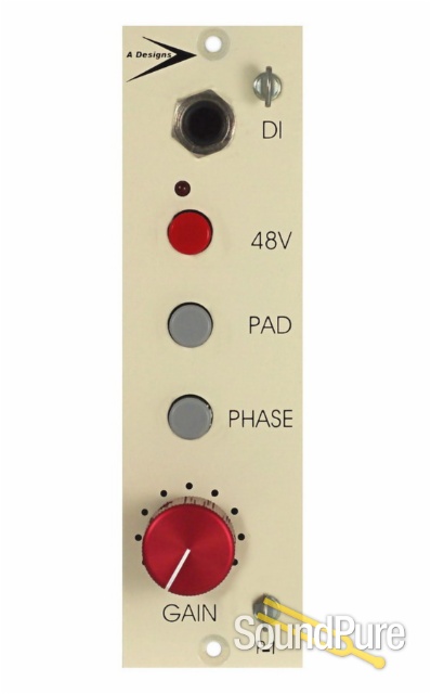 The full line of EM Preamp cards from A Designs were built to bring a few different flavors into your 500 series rack, but built with an extreme quality standard that is only possible with small quantity, boutique runs which guarantee each module is built to world-class audio standards. Each module has custom wound transformers which really create a noticeable difference in tone, and to be honest, the difference is quite impressive compared to many of the modules available on the market today from other manufacturers. Each module has a plenty of gain for your quieter sources like acoustic guitar as well as traditionally quieter microphones like ribbons. The front panel DI sits prior to the input transformer which allows you to pickup that great coloration that each of the modules individually presents, even when patching in an instrument. The preamp modules from the A-Designs series are the: P1, EM Red, EM Silver, EM Blue and EM Gold. With the exception of the P-1 (Since we own 3x Pacificas), Sound Pure owns pairs of EVERY SINGLE module above, and use them daily in our own world-class recording studio, the Sound Pure Studios. We are here to report our findings after years of using them, and you should know any question you have can be e-mailed to us, or you call us toll free, we’d love to talk to you more about these modules, microphone pairings, comparing these to other pres on the market, and whether or not they are right for you.