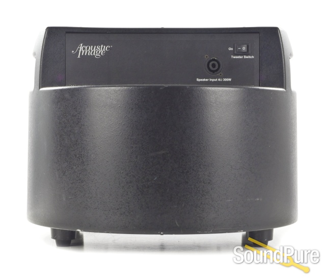 - 4 ohm cabinet, with 10-inch downfiring woofer, frontfiring 5-inch midrange, defeatable 1-inch tweeter