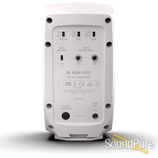 Equipped with a USB-C input and two balanced TRS sockets, D3V offers high-quality digital and analogue connections. Streamlined controls include a multi-function volume knob, intuitive room compensation switches and a multi-color status indicator. The D3V comes complete with detachable monitor stands as well as in-built threaded mic stand mounting points (3/8″) for perfect positioning in any environment.