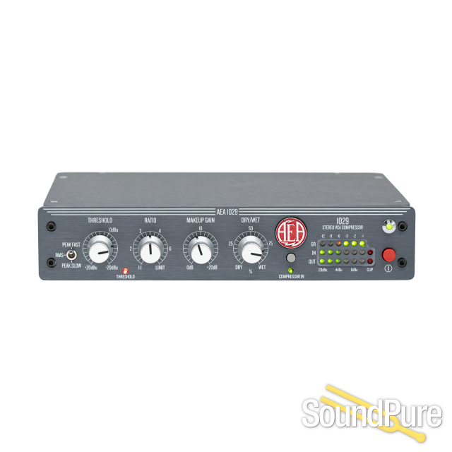 Packed into a sleek, half-rack design - the AEA 1029 is perfect for desktop use or for those looking to save space in their rack. But don’t let its size fool you, the 1029 is a full-featured compressor that packs a punch. With 3 position Attack Time (Peak Fast, Slow, and RMS) and a variable ratio from 1:1 - Limit, the 1029 can go from subtle to extreme as you see fit. Equally at home in a bedroom or professional studio, the AEA 1029 is the perfect addition to any engineer’s toolkit.