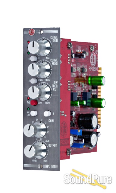 The RPQ500 module, designed after the successful RPQ preamp, provides the same ultra-clean, high-gain signal path that has earned AEA preamps their great reputation, but in a 500 series package. JFET circuit topology provides all the dynamics, subwoofer bass, and fast transients that your microphones can record. The NoLoad™ input impedance above 10K Ohms means the RPQ won’t load down a mic and change its sound. Low Energy Storage™ circuit design instantly recovers from overloads for superior dynamic performance. The original RPQ with CurveShaper™ was designed to fully capture every nuance of ribbon microphones: vintage or modern, passive or phantom powered. Engineers have discovered that the RPQ500 also complements their moving coil, condenser mics. By virtue of its sonic qualities and versatility, the VPR Alliance approved AEA RPQ500 is the tool of choice for all microphones whenever a true and pristine signal path is desired.