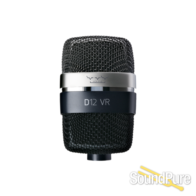 The D12 VR is a reference large-diaphragm dynamic microphone with cardioid polar pattern. Designed specifically for kick-drum recording applications, the microphone has a thin diaphragm to enhance the low frequency performance. Its warm sound is realized by the original C414 transformer, especially impressive at high signal levels. The D12 VR features three active filter presets to match its sound shape with the kick drum's character. When activated, the output level is automatically reduced by 10 dB. The filter settings can be controlled using a switch on the microphone body. Without phantom power, the microphone operates in passive mode and delivers the instruments pure sound.