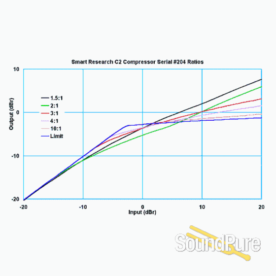 The characteristic sound of this unit arises mostly from the fast response at the onset of compression, which when delayed to occur around the mid range attack settings (after 0.3 to 3 milliseconds) results in a window through which transients can still pass. When used accross a mix, or with any dynamic programme, this has the effect of adding 'punch', as the sidechain 'breathes' around these transients, while still controlling overall levels. CRUSH mode has been developed as an extension of this 'musicality', adding to and accentuating the factors involved in producing the character of the unit. CRUSH may sound surprising to those interested in more gentle applications, being capable of exaggerated compression effects, but in conjunction with the fast limit settings also introduced with this unit, it allows the C2 to be used for a much wider range of applications than the C1.