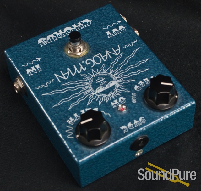 The Analog Man Chorus pedal now has true bypass (since 2000), depth knob, and cool silk-screened, darker blue hammertone powder-coated cases for durability. Also using the best quality USA made circuit boards, double-sided to isolate the signal from any noise, and professionally soldered for perfect, reliable circuitry. These also have more shielding, less jumpers, and no volume drop when the pedal is switched ON. Still has the same awesome sounding circuit!