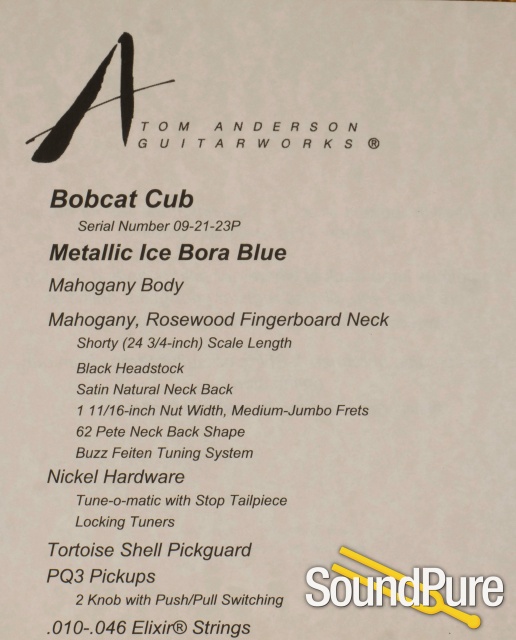 There is something to be said about not only a good guitar, but a good guitar with a single P90 pickup - something I'm partial to. Firstly, this guitar is one of Tom Anderson's creations and needs no higher indication of its caliber. The eye-catching metallic finish is a head-turner, and along with supreme playability, fit and finish, this is a piece that really makes you play differently. There is nothing to hide behind, and this guitar tells no lies. It's ballsy, punchy and has a voice other kinds of guitars simply can't achieve. Treat yourself to something different, and don't wait on this one.