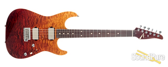 An Anderson Cobra S in a blazing "Fire Wipeout" finish and Tom's HC series humbuckers.