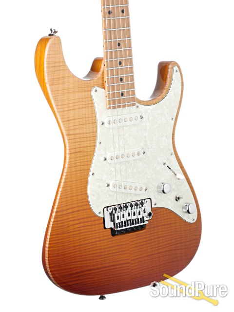 Drop Top Classic offers its eye popping gifts accompanied with the class of a classic pickguard, hence the name Drop Top Classic. But its name not only denotes a look rooted in tradition but in its intrinsic sound as well. Yes, this classy guarded guitar not only delivers classic good looks but the anatomy of the actual pickguard itself creates a more "Classic" tone, a tone to certainly please a connoisseur of the classics. Drop Top Classic announces itself with a radiant book-matched flame or quilted maple, koa or walnut top that is actually bent (or "dropped") over a carefully chosen tone wood body create a smooth and comfortable, swooping forearm contour, and it does it all in keeping with the traditional of pickguard styling. Since 1991 Drop Top Classic has been the fancy, classic "S" to own. Before this time nothing like it existed. You could say, it was an inspired revelation that started a joyous revolution, of guitars that is.But we certainly could not stop there. Though the years, as we began to unlock the secrets of Drop Top tonalities and the vast richness lying within, we applied this depth of understanding to the realm of the Drop Top Classic.