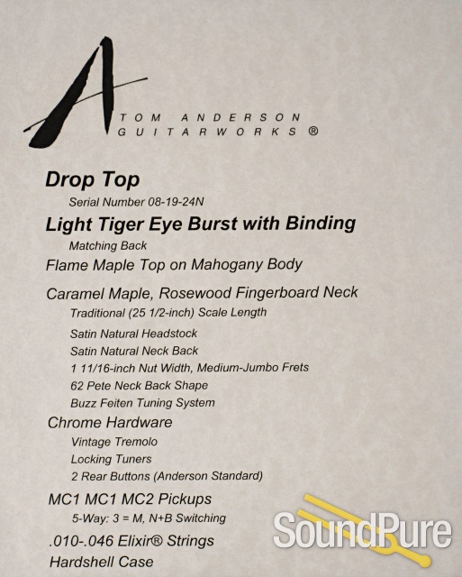 - Anderson Drop Top Light Tiger Eye Burst Guitar #02-07-24A