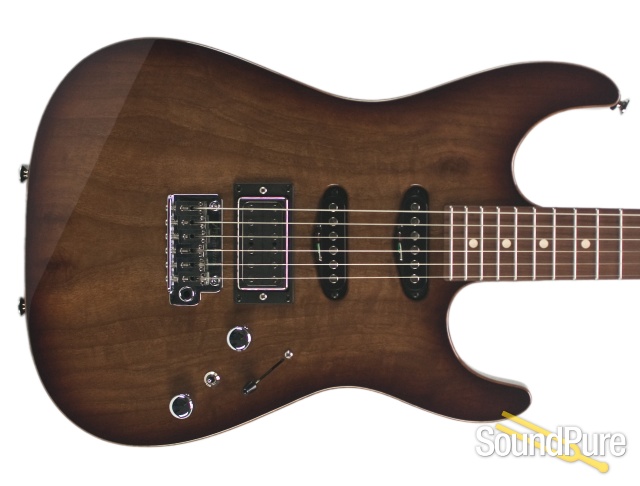 But with the introduction of the magnificent Drop Top in 1990, all that changed.  The “S” instrument could now have it's full body contours, be a thing of astounding beauty and have prodigiously rich and spectacular sound—eminating from ample amounts of tone wood backing an exotic wood top—all together in one instrument for the very first time.