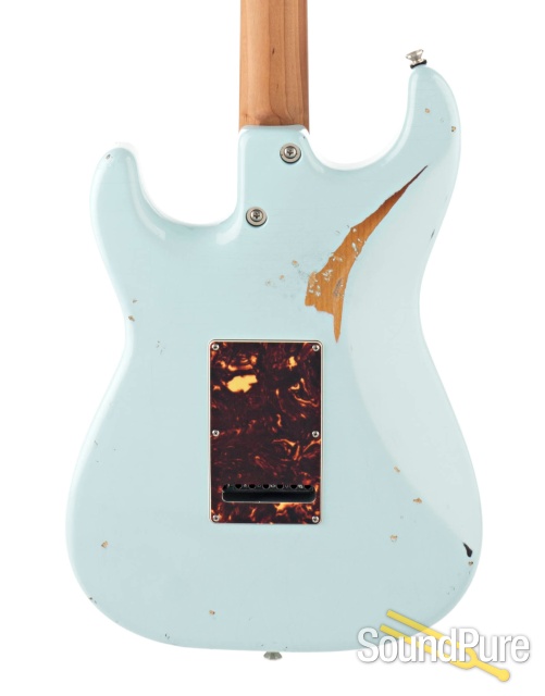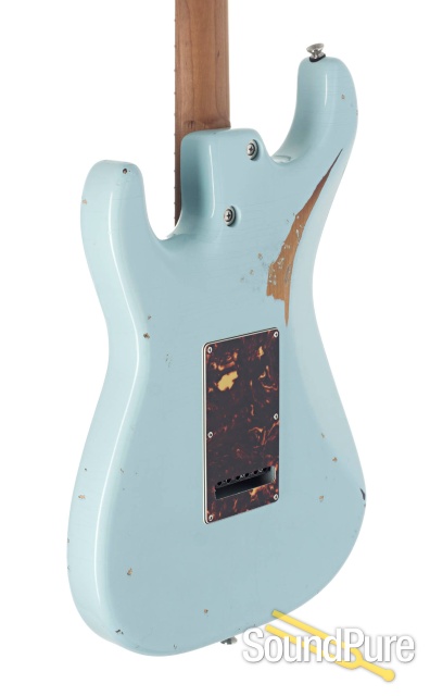 This stunning Anderon Icon Classic comes with a Daphne Blue over Tobacco Burst Finish in Distress Level 3.