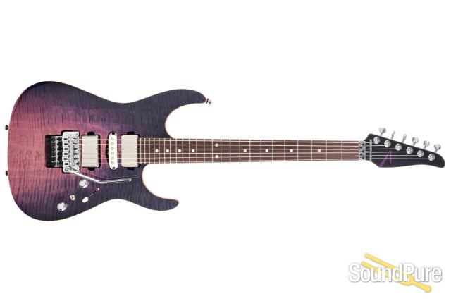 Just wow! This Angel seems to glow from inside with a gorgeous, tightly figured maple top finished in Purple Wake Surf by the masters at Anderson Guitarworks. Sporting a sunken floyd-style tremolo with locking nut, HSH pickup configuration, and "Li'l" 24 3/4" scale you'll be high-flying, divebombing and navigating every inch of this beautiful machine with glee.