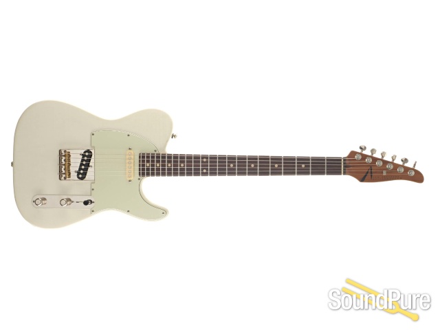 Tom Anderson's T Icon in a perfectly aged Olympic White finish, featuring their 62 Pete neck shape and a roasted "Caramel" Maple neck.