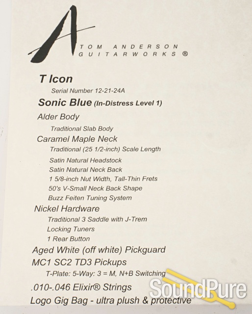 It is this intricate attention to detail, along with all other Anderson elevated performance attributes, that creates this T-style instrument of unparalleled vintage proportions, known as T-Icon.