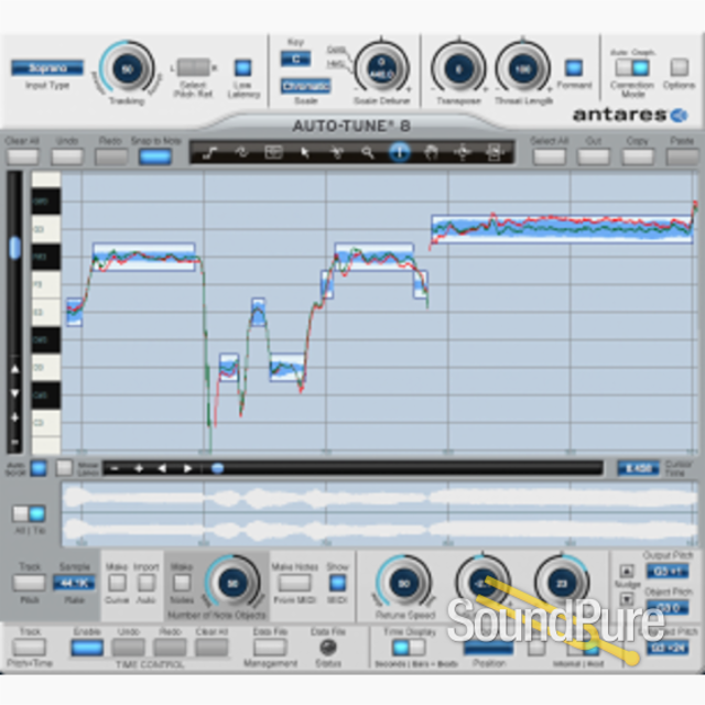 For most common pitch problems, Auto-Tune 8's Automatic Mode detects input pitch and instantaneously adjusts it to the closest pitch in a user-specified scale (including major, minor, chromatic and 26 historical and microtonal scales).