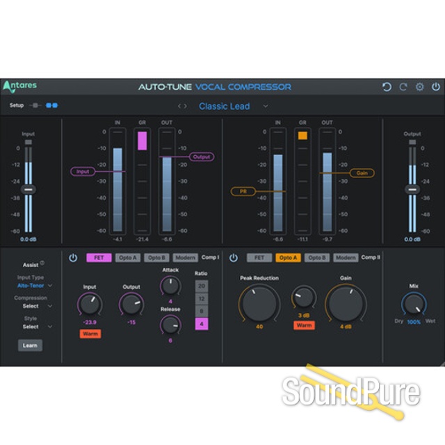 Stack two fully featured and tweakable compressors from a list of the four most popular compression styles (FET, Opto A, Opto B, and Modern) in any order to create the ultimate vocal compressor.