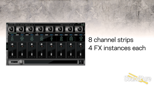 The Discrete 8 Premium Upgrade pack allows you to use 8 channel strips with 4 FX instances each. This is two times the capabilities of the Basic FX pack that comes by default with your Discrete 8 unit. The Premium Upgrade library features 50+ Antelope Audio real-time FPGA FX, including Vintage EQs, Compressors, AuraVerb, Guitar Amps & Cabinet models.