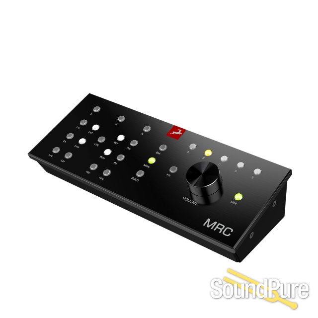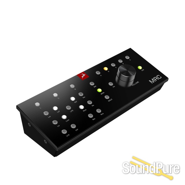 The MRC's layout and buttons mirror all major monitoring controls of the system, supporting more than 23 formats from stereo to 9.1.6 Dolby Atmos. It provides physical access to volume control over either the calibrated multichannel output or the interface’s dedicated stereo monitor output. The MRC also offers individual speaker solo and mute functionality for all supported formats, as well as a customizable preset system for switching between signal sources, outputs, audio formats, and much more. Carefully designed for seamless monitoring workflow, the controller features clicky, tactile-feel buttons and LED indicators to eliminate any guesswork. It is also plug-and-play compatible with Atmos-ready Antelope Audio interfaces via a single USB computer connection.