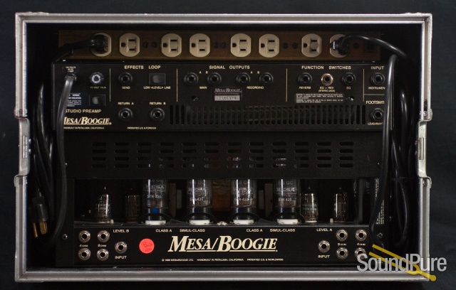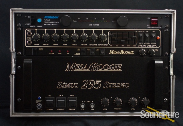 Currently housed inside is a Mesa Boogie Stereo Simul-Class 295 power amp, Mesa Boogie Studio 2-Chanel Preamp and a Furman PL Plus power Conditioner. Contact us about setting up a package deal for any of the pictured items!
