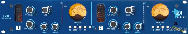 The API Select T25 is a classic 2-channel, FET feedback-style compressor/limiter with a Class-A tube output stage that utilizes a custom API transformer. Built with 12AT7WC and 12BH7 dual-triode vacuum tube, the T25 represents a new direction in API’s line of compressors. It offers the user a powerful and flexible feature set, including the ability for use in either dual mono or stereo mode, and is carefully engineered to deliver classic tube performance. The T25 excels at delivering the unmistakable sound of API and features our industry-exclusive Five Year Warranty.