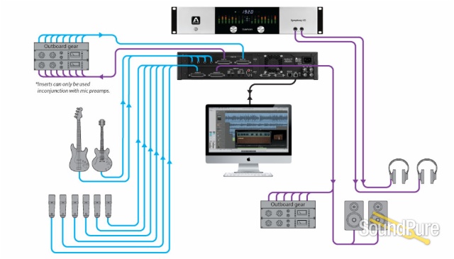 All Symphony systems are ready to go out of the box with USB 2 connectivity as well as HD connectivity if you’re working on a Pro Tools HD system, be it HDX, HD Native, older HD2/3, or even a computer equipped with a Symphony 64 PCIe card. On top of that though is the option to pick up a Thunderbridge adaptor for true thunderbolt transfer speeds, not just Firewire or close to Firewire speeds running through a Thunderbolt connector like some other interfaces. This enhanced transfer speed gives you the ability to daisy chain multiple systems together and still obtain incredibly low latency on a very stable single platform.