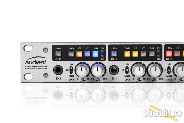 The ASP880 provides eight of Audient's renowned console mic pres, pristine converter technology and a versatile feature set that includes Variable Impedance and Variable High Pass Filters. All in a 1RU rack! 8-channels of incredibly clean and clear Class A mic preamps PLUS A/D conversion! The ASP880 is the perfect 8-channel preamp expansion unit for the highest quality drum and live band recording! This Preamp is available for SoundPure's Try-Before-You-Buy Program so if you want to hear how it sounds in your studio, shoot us an email at ProAudio@SoundPure.com or call us anytime at 919.682.5552. Thanks for watching!