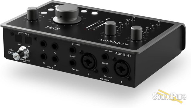 iD24 incorporates two Class-A mic preamps with the same discrete circuit design found in the company's renowned recording console the ASP8024-HE.