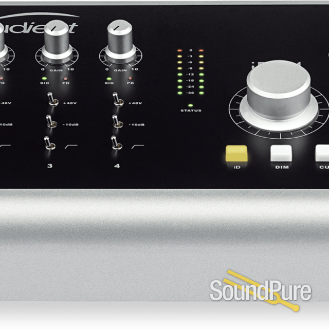 Exceptional 20-in/24-out desktop interface solution with built-in monitor control, 4x Audient Console mic preamps, 2x Discrete JFET Instrument Inputs, 24-bit/96kHz converters and 16 x 16 ADAT lightpipe I/O and more! USB-C interfacing so you can expect compatibility with both Mac and PC for USB 2.0, 3.0 and Thunderbolt. This is a demo/open box item.
