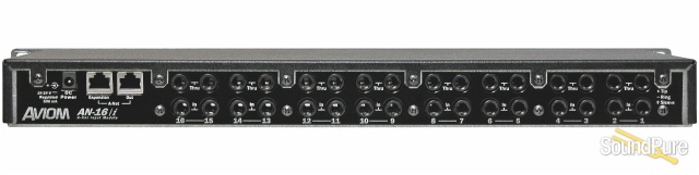 The AN-16/i provides 16 balanced line-level inputs into a Pro16 system. Audio is converted to digital and transmitted via A-Net, up to 500'/150m over Cat-5e. A dedicated audio thru is available for each input channel, allowing the AN-16/i to be seamlessly inserted into an existing audio signal path.