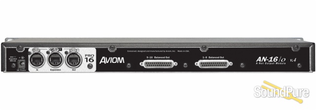 The AN-16/o v.4 Output Module is a 1U rack-mount 16-channel digital-to-analog converter for Pro16® digital snake and audio distribution systems. Digital audio transmitted to the AN-16/o v.4 via Aviom's A-Net® Pro16 digital audio transmission protocol is converted to analog using 24-bit, 48kHz converters.