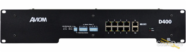 There are two versions of the D400 product. The standard D400 has an Aviom A-Net input, perfect for using with Aviom's analog input modules or digital console cards from Aviom or our third party partners. The D400-Dante has a Dante input instead, and allows up to 32 channels (at 44.1/48kHz) to be routed from a Dante-enabled console or digital audio network to the Personal Mixers.
