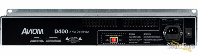 The D400 and D400-Dante A-Net Distributors provide the link between the personal mixing system's inputs and the Personal Mixers, providing DC power and a copy of the A-Net digital audio stream to your Aviom Personal Mixers, utilizing standard Cat-5e cables.