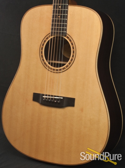 What an inspiring and earthy dreadnought! It's got a lot more balance than you'd suspect, making it good for fingerstyle as well as flat-picking and rhythm. It's loud and defined with enough overtone blossom to make every note a real joy. The maple binding and unique rosette are truly handsome and the neck profile is a full, cozy C. If you're looking for an all-solid dreadnought with a small price-tag, this is your best bet.