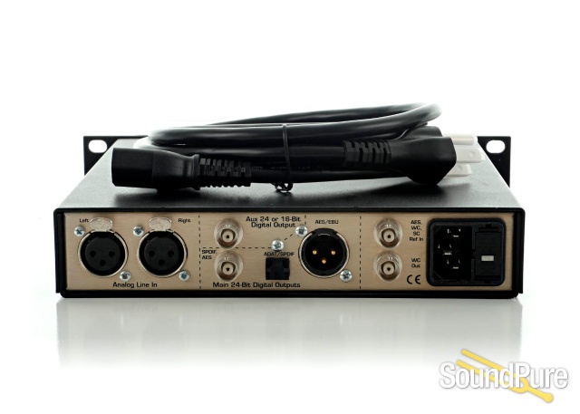 The exclusive UltraLock(tm) circuit provides jitter-free performance while automatically locking to any incoming clock source including word clock, super clock, and AES. The front-panel gain controls make it easy to adjust input levels, while the 9-segment full-digital meters clearly and accurately display all transient events to help the user avoid clipping. The optical output supports both AES and ADAT formats (including ADAT SMUX) providing maximum flexibility. The separate, fully-independent auxiliary output can follow the main output, or be used to feed a second recording device at a lower resolution.