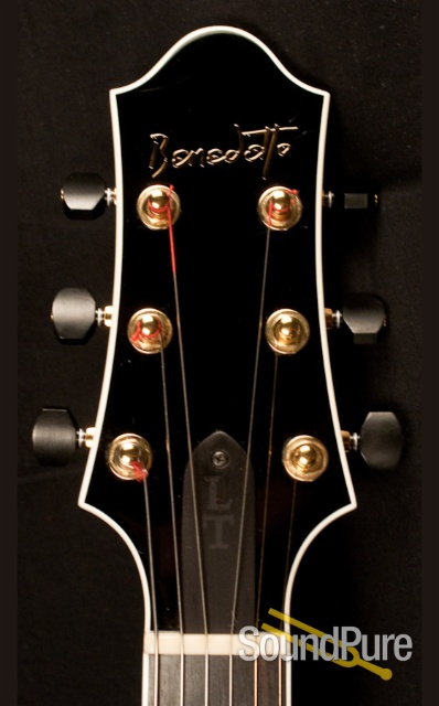 This is a pre-owned Benedetto Bravo that was recently traded to the Sound Pure Guitar Boutique. This guitar is in near MINT condition. Only scratch can be found at the headstock and not noticeable unless under bright lights.