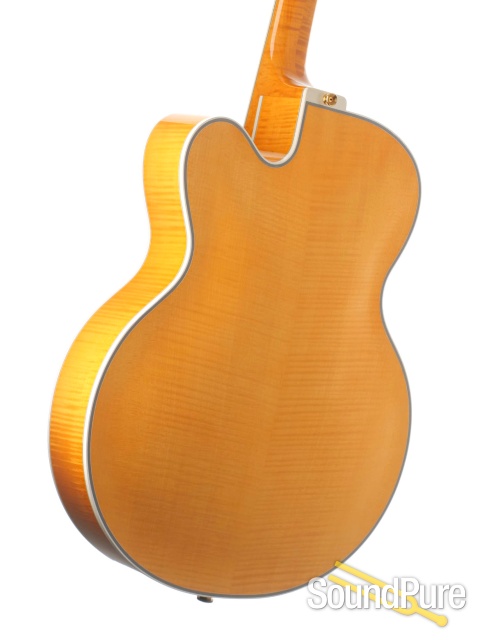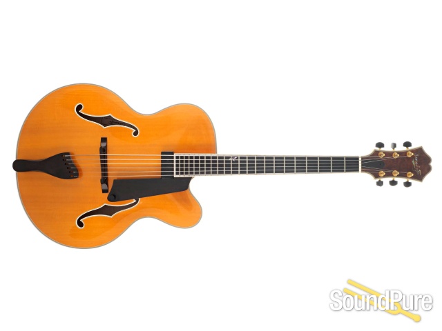 You don't see one of these everyday! This is a bountiful jazzbox with all of the bells and whistles - a floating Benedetto S-6 pickup, gorgeous hand carved European maple and spruce...it's just not possible for an archtop to get much better. Don't let the simple aesthetics fool you: this guitar is meant for one thing and that is to be played. From Bluesy to Smooth, it sounds great and if you're feeling particularly eclectic, it does absolutely rip through a distortion pedal. Don't miss this one!