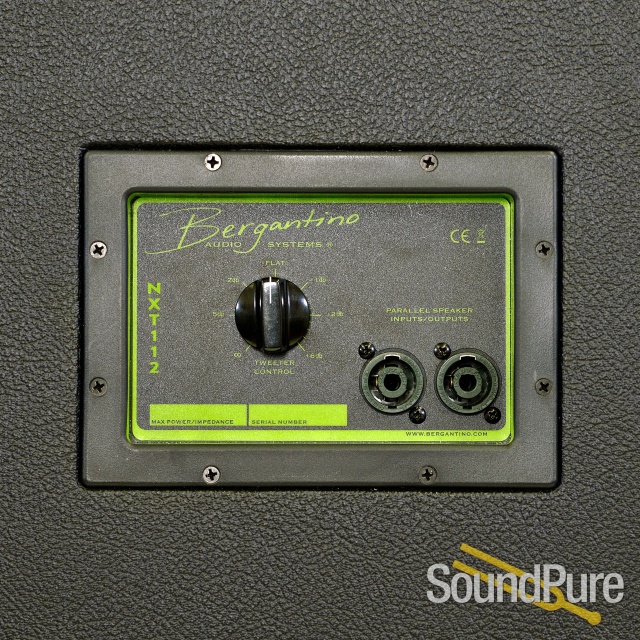 The internal components used are extremely high quality and are of Bergantino design. No ‘off-the-shelf’ parts are used. Our newly designed NXT Neodymium magnet woofers are used for the low frequency section of the NXT series cabinets. These Neodymium drivers have a nice full and punchy low-end and a very sweet midrange. The NXT series cabinets utilize our Reference compression tweeter mated to a constant directivity horn, producing a very natural and extended high end. It is mated to the woofers through a custom designed phase-coherent crossover with a tweeter level control.