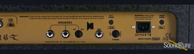 Goldfinger 45 - The quartet of 6V6's delivers 45 watts of clean headroom and can be scaled down to 30, 23 or 15 watts.