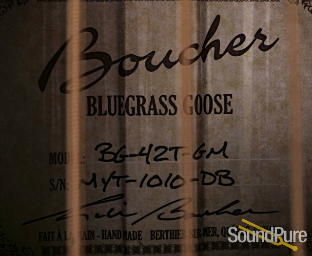 Robin Boucher personally selects Adirondack red spruce for the bracing and soundboard in order to give the instrument its special bluegrass sonority. Rich low ends, driving mids and beefy highs describe the sound spectrum of our Bluegrass Goose. This guitar is incredibly easy to play due to the elevated soundboard radius and the unique profile of the neck which will perfectly match the hand of the guitarist.