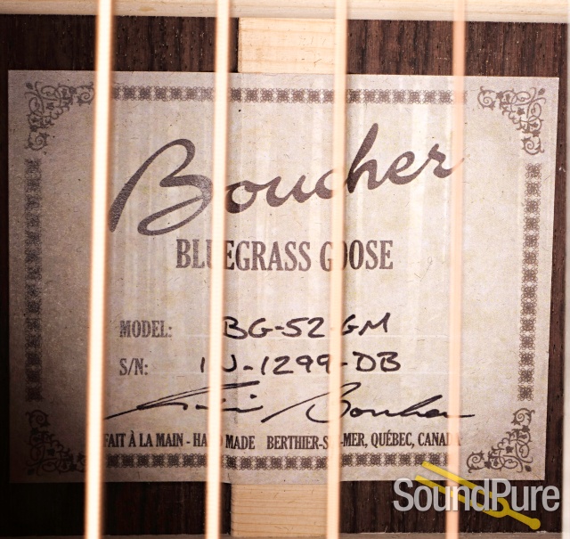Boucher delivers another stunning example of what a dreadnought should look, play, and sound like. The torrefied mastergrade Adirondack spruce top is warm and open, while still providing all of the volume and power one would expect from Adirondack. The East Indian Rosewood adds in a bit of sweetness and lush overtone content that gives this guitar an unmistakably rich tone. This beauty has great bass response and an overall clarity in the higher frequencies that's sure to delight any picker. Robin Boucher's unbelievable craftmanship and world class attention to detail are on full display with this special Bluegrass Goose.